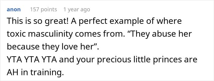 In the featured story’s case, Alison Huff, a marriage expert, believes that this situation is the prime opportunity for a heartfelt apology from the mom and her boys. “Particularly in scenarios such as this, it isn’t okay to back your child even when they’re wrong—they need to understand that they were wrong so they can make wiser decisions in the future.”