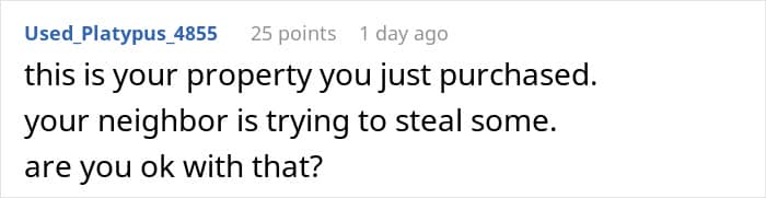 RELATED:Man got a great deal on a 1.5-acre lot, only to discover his neighbor had built a fence crossing his boundary