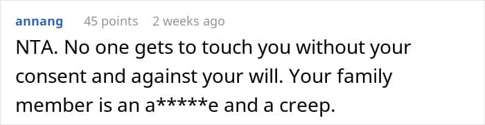 The woman confronts her family member about his behavior, letting him know it’s inappropriate, upsetting and disturbing