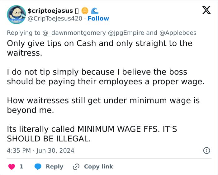 Another topic that people began discussing due to Dawn’s post was tipping culture. Although the poster was feeling exceptionally generous and left behind a tip that was over 50% of the bill, around 29% of Americans see tipping as an obligation. A survey also found that 40% of people don’t like it when businesses suggest tip amounts to their customers.