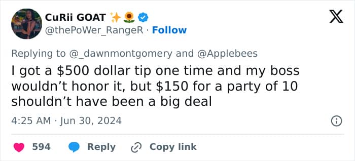 Before they even sat down to eat, Melissa, the waitress, shared that she was new and anxious about waiting on a large group. Dawn’s family was patient with her, and she decided to leave a $150 tip for Melissa. Usually, businesses love it when customers leave tips for their waitstaff since it helps them get away with not paying their employees well. But this time, the Applebee’s manager had a lot to say.