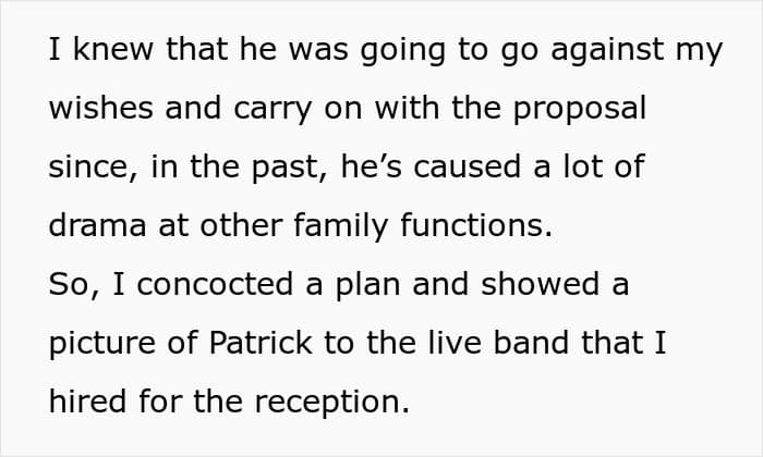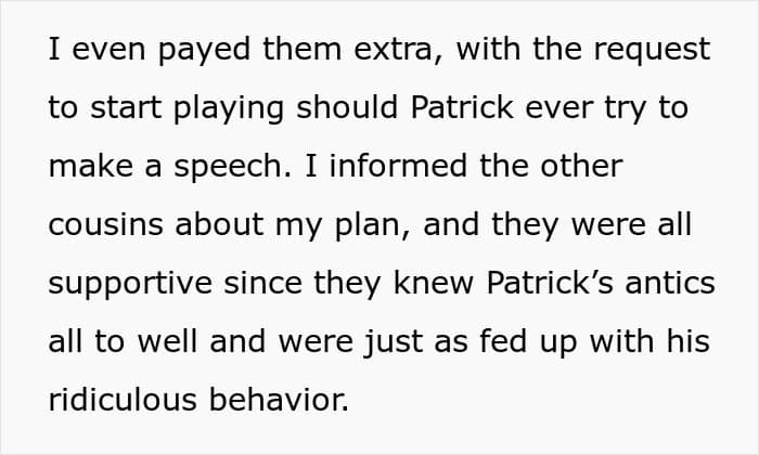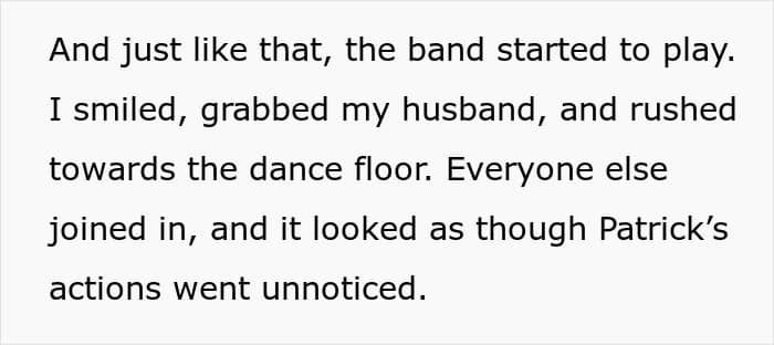 First things first, we asked Claire what she thinks about the tale and the OP’s wicked smart plan, to which the woman said: “What a crazy stressful situation! Prepping the band to play on cue whenever ‘Patrick’ approached was a stroke of genius though!”