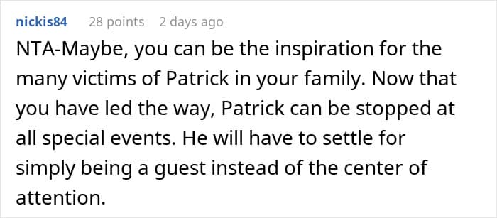 In the best-case scenario, those people just won’t show up and will let you get on with your celebration without you having to stress about Aunt Linda causing a scene – in the worst-case, though, “Patrick” happens.