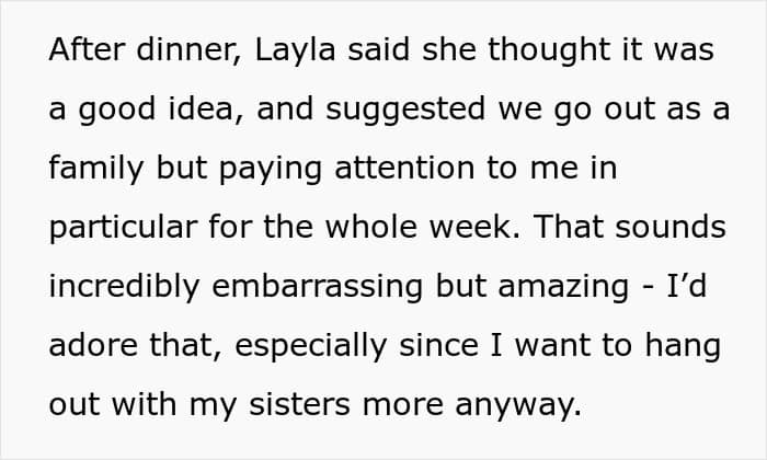 Guess what? They said that it was not the time to brag as his siblings were traumatized and they needed more attention. They even accused him of not considering them his “real” siblings. Well, that must have further broken OP. But after dinner, one of his sisters suggested that they go out as a family but pay more attention to him, and the poster was thrilled about it.