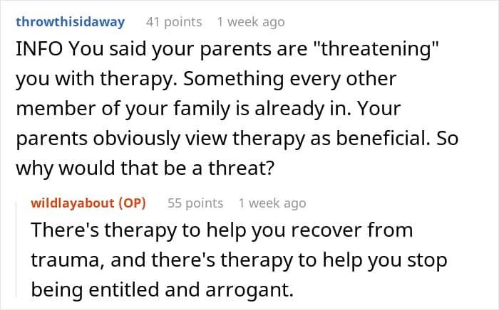 So, it’s natural that he felt left out and asked his parents for some alone time just with them on his birthday dinner. Things just escalated after that as they were not pleased to hear that they favored the other kids over him. In fact, they even threatened him with therapy. After a few minutes of silence, OP broke it and spoke about his achievement.