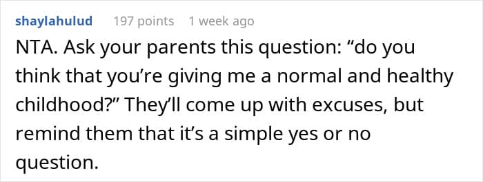 Redditors empathized with the poster and didn’t hesitate to call out the parents who have been ignoring his emotional needs