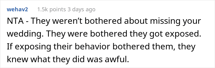 Despite the family drama, readers unanimously agreed that the groom is not at fault
