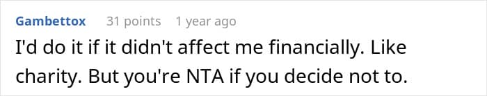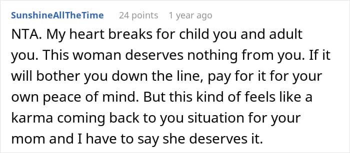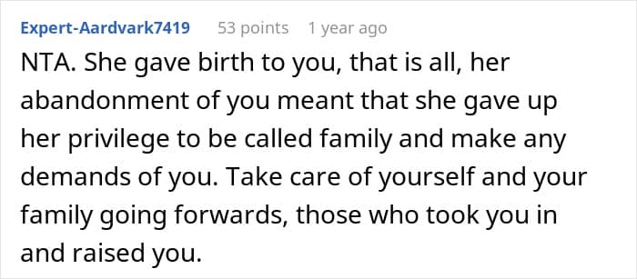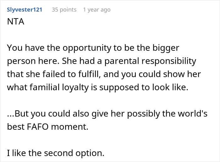 Quite a few people sided with the woman, saying that she didn’t owe her mother anything