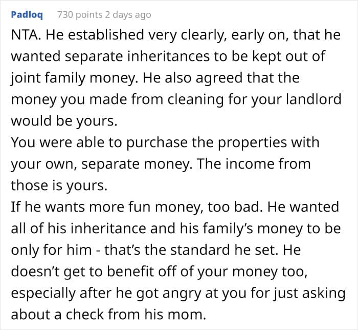 A few days ago, Reddit user Zealousideal_Fly4786 submitted a postto the “Am I The [Jerk]?” community that perfectly illustrates this tricky and dangerous predicament. In it, the woman describes how her partner used her savings and inheritance against her, bending the rules he himself had established. The story serves as a reminder that communication is key to understanding one another and that having a policy agreed upon in advance is way more effective than trying to put it together on the go.
