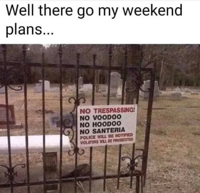 Okay, six years later that law was repealed, and today there’s nothing stopping us from dressing up as witches for Halloween, decorating our homes with cobwebs and bats, buying our kids Ouija boards, and cracking up at witty witchy jokes from various online pages. Like, well, this one on Instagram.