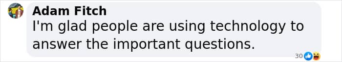 One comment said, “I’m glad people are using technology to answer the important questions,” while another joked, “Going on past experiences, it’s nothing like this.”