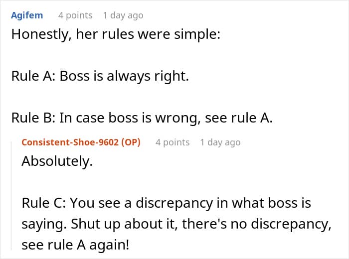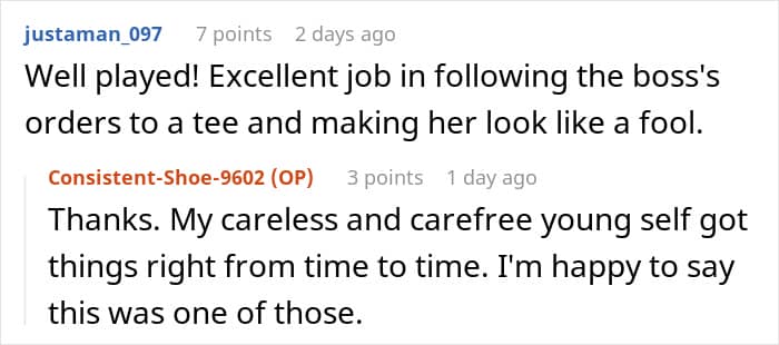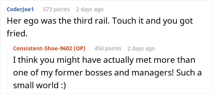 Readers weren’t too fond of the boss either, and many praised the employee for holding their ground