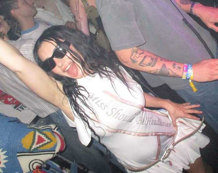 After a stellar Coachella set featuring guest appearances from Lorde, Billie Eilish, and Troye Sivan, Charli XCX’s outfit at a private after-party at the Guess Jeans compound included a loud and bold message.
