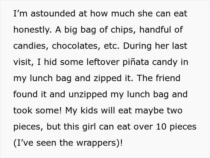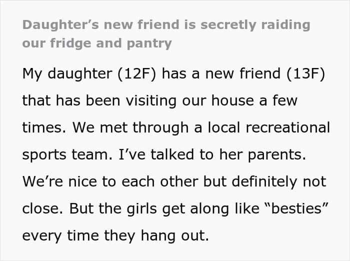 But today’s Original Poster (OP) recently detailed the curious eating habits of her 12-year-old daughter’s new friend, a frequent guest in their home. What started as a few eyebrow-raising pantry raids has now escalated into full-blown snack heists. And while the OP didn’t want to embarrass the friend, the question lingered: is this just normal teen hunger, or something more concerning?