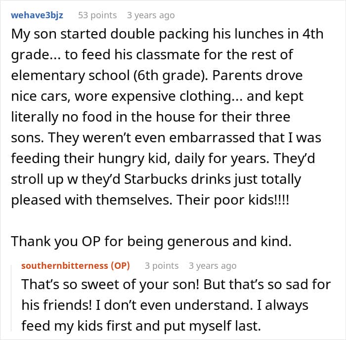 Netizens were compassionate towards the friend, coming up with a common theme that the friend might be sneaking food not out of greed, but out of necessity or shame. They also urged caution in the OP involving the parents, fearing the friend might face punishment. Instead, they suggested having a gentle, one-on-one talk with the child to understand what’s really going on.