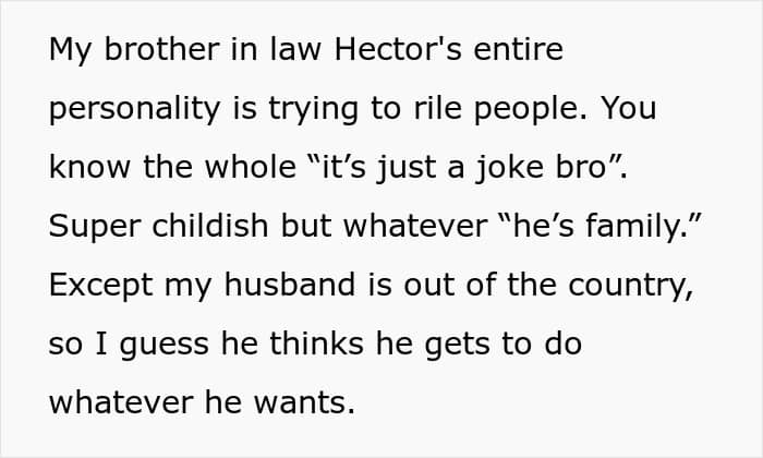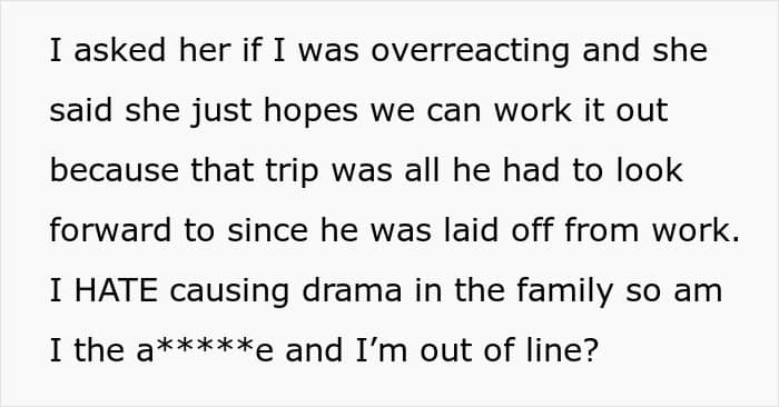 When the man complained to his mom, she called the OP, insisting that she make the situation better, as the BIL really wanted to go on the trip he’d been banned from. This made the woman feel guilty for causing family drama, so she went online to ask if she was the jerk, as some of the family tried to paint her.