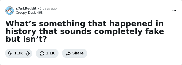 When Reddit user Creepy-Desk-468 asked netizens, “What’s something that happened in history that sounds completely fake but isn’t?” folks narrated such events that will utterly baffle you. Piqued your interest, have we? Well, just scroll down to check out the astonishing events for yourself!