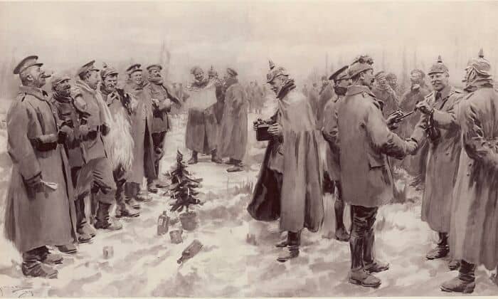In WW1, British, French, and German troops were fighting around Christmas. On Christmas day 1914 some of the units fighting each other decided to call a truce and celebrate together.