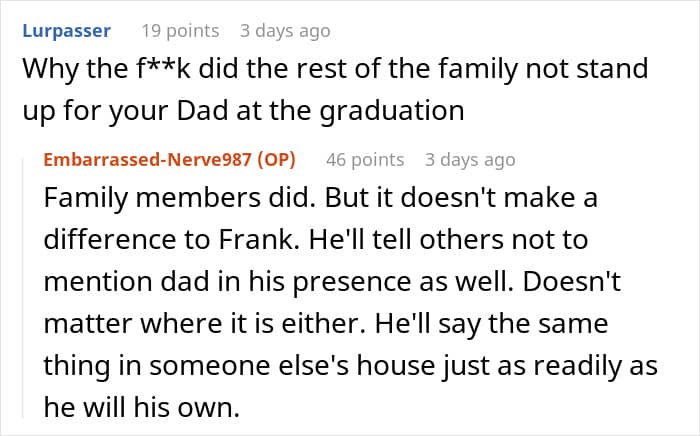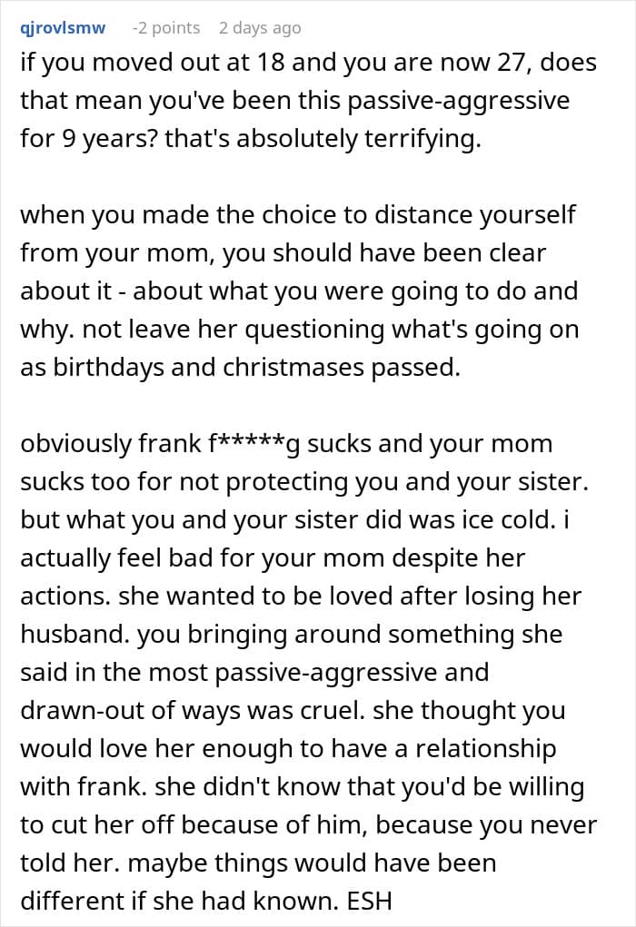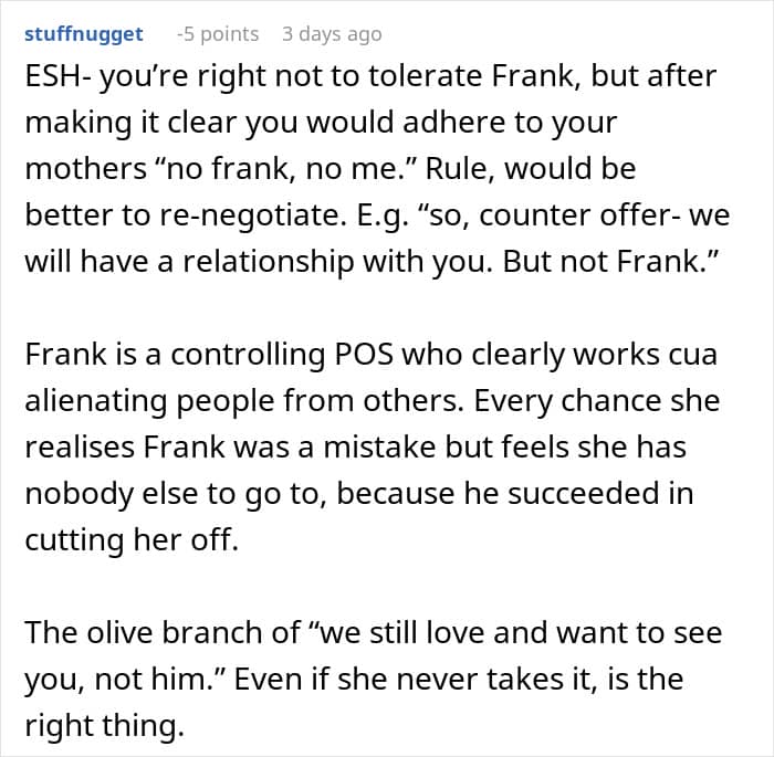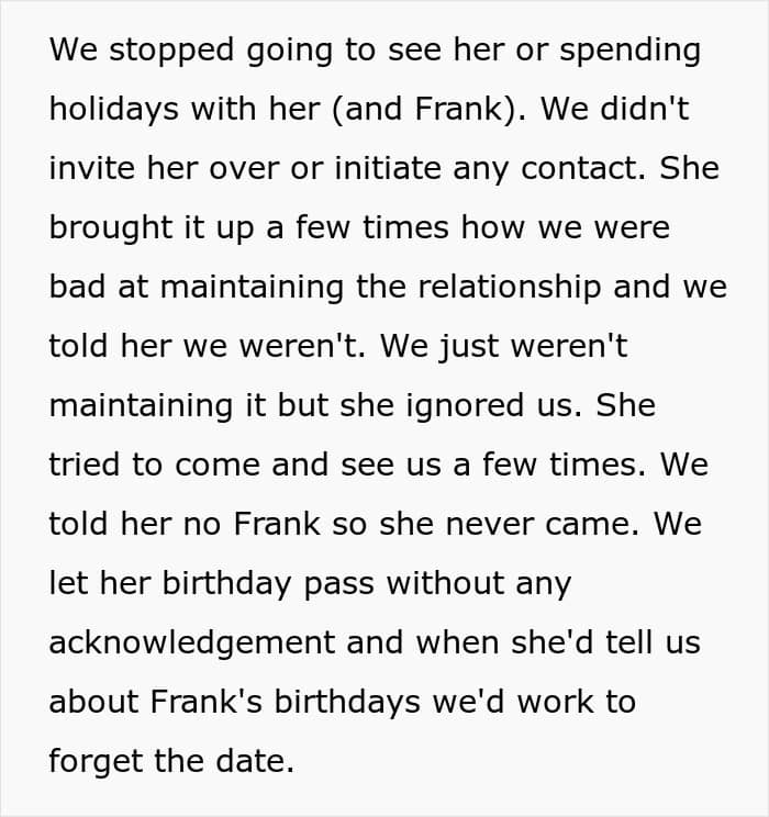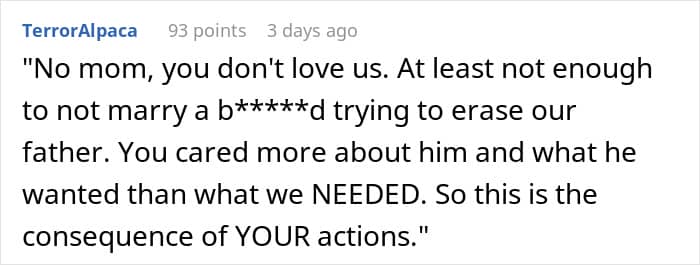 This stepfather even forbade mentioning the biological father in the household, which pushed the kids to go no contact and leave their mom behind