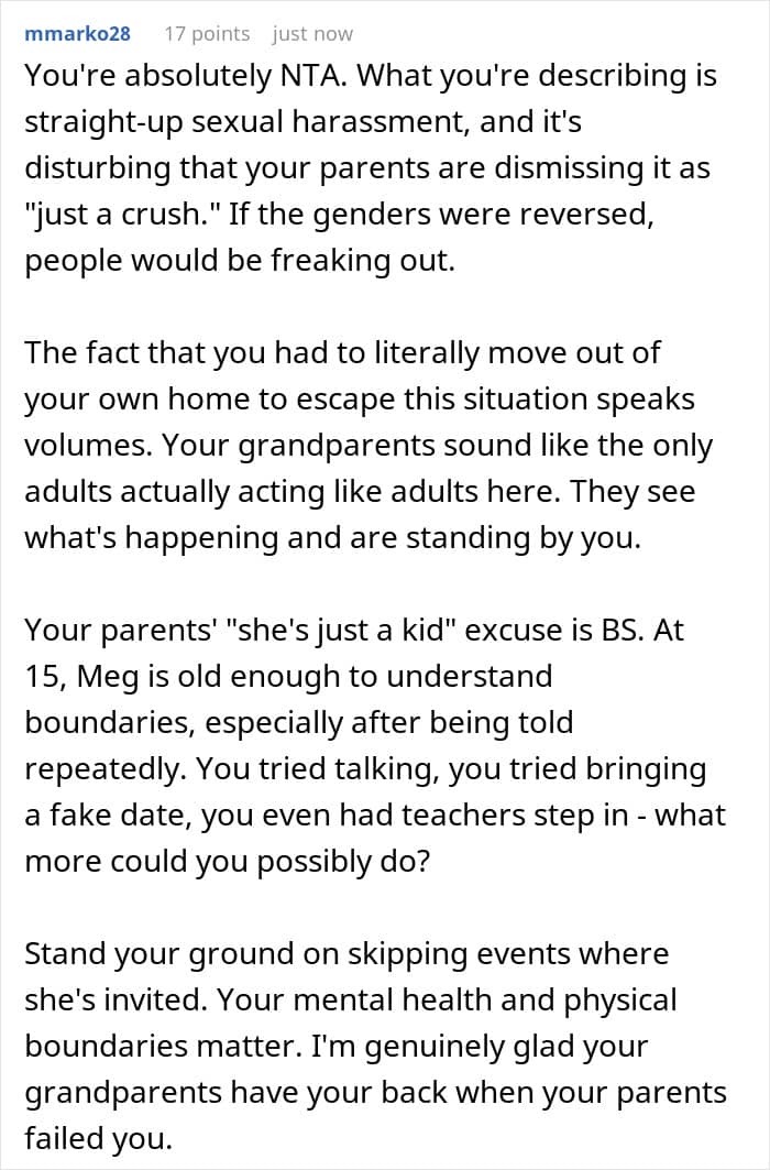 This was the experience of a teenage boy who dealt with the untoward advances of his sister’s best friend. Instead of helping him ward her off, his parents downplayed the situation as a “harmless crush.”