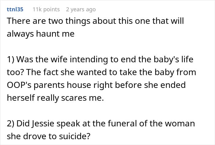 But Jessie wasn’t done being “helpful” and escalated her meddling, until the wife’s mental health deteriorated even further. She ripped apart his office looking for evidence of cheating, and even left their baby home alone and took off.