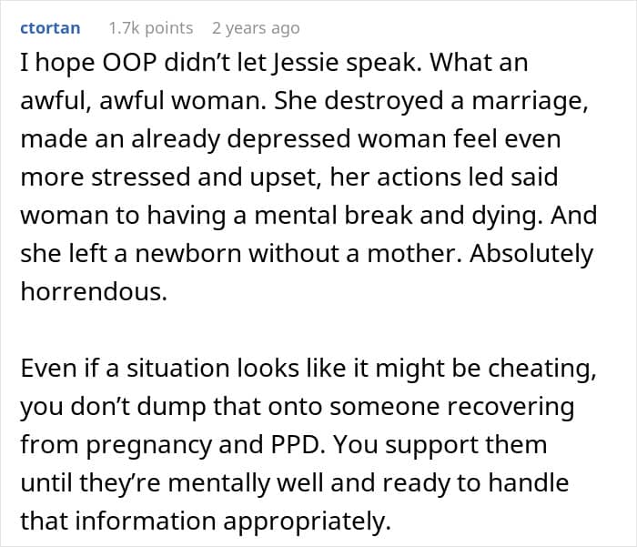 John, trying to keep things civil, reassured his wife, but the damage was done, and Jessie’s meddling led to his wife’s growing distrust. Things got out of hand pretty quickly, with heated arguments, tensions at home, and a whole lot of snooping.But the reality? No affair. Just a hardworking husband trying to manage everything while his wife struggled with her mental health, because postpartum depression is no joke, folks.