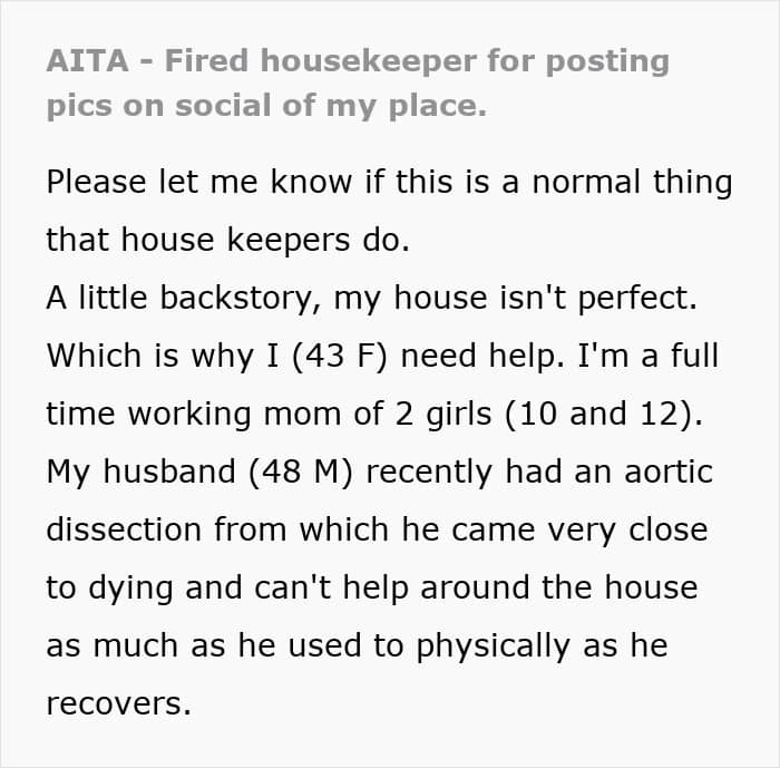 Netizens side with the woman, saying that the housekeeper’s behavior is unprofessional, and she is not a jerk for firing her