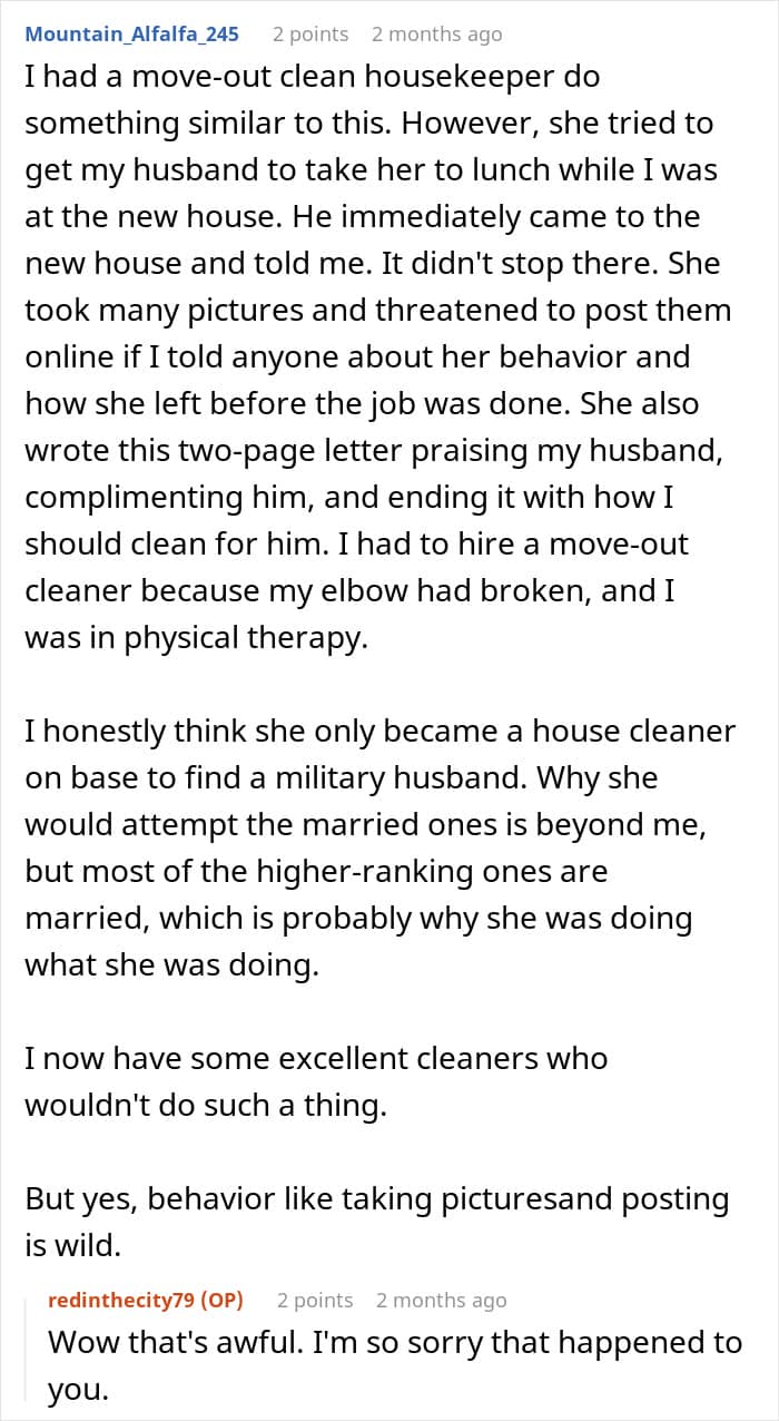 One Redditor learned this the hard way after hiring a housekeeper to help her deep clean her home. But, instead of a cleaning session, she ended up with fake pics on social media, missed spots, and a bill that’ll make you clutch your pearls.