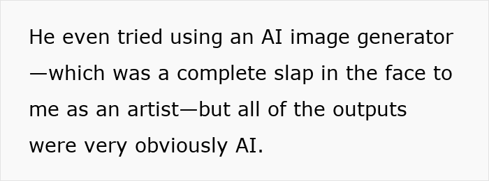 After too much free labor, the woman refuses to create a wedding portrait for her boyfriend’s buddy, so he tries to replace her talent with AI