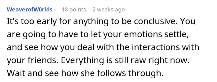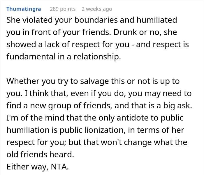 “She violated your boundaries and humiliated you,” the commenters gave their verdict