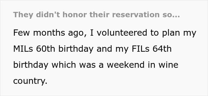 She made a reservation for 10 people months in advance to celebrate her father-in-law and mother-in-law’s birthdays, but when they arrived, they found out that their table was supposed to be outside and because it was raining, they weren’t seated, which ignited a revenge plan.