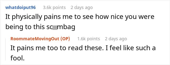 Luckily, support and kind words from other netizens is helping u/RoommateMovingOut to stay level-headed. “A lot of people shared their experience with me through comments and messages. Many said that experiences like mine have led them to have less trust in others.”