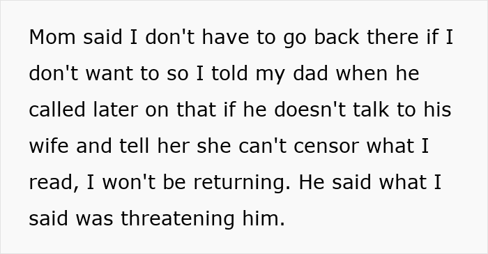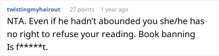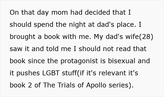 Reddit user Ganmedddie belongs to that dwindling minority. However, his love for the written word recently became a source of conflict. After he reconnected with his estranged father, he brought a novel on one of his visits, but his dad’s wife took issue with it because of the protagonist’s sexual orientation.