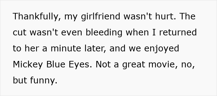 Unfortunately, in the middle of his grand entrance, the OP’s girlfriend ended up taking a tumble, hitting her chin on a chair. While she thankfully wasn’t seriously hurt, Mr. Rude McShoverson didn’t even acknowledge what happened – he just went right ahead, got his ticket, and strolled to the theater. That’s when the OP decided justice needed to be served, but not with fists. Oh no, he had something much more fun in mind.