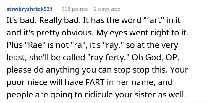 Commenters sympathized with the author’s concerns, pointing out that they also immediately associated the name with “fart”