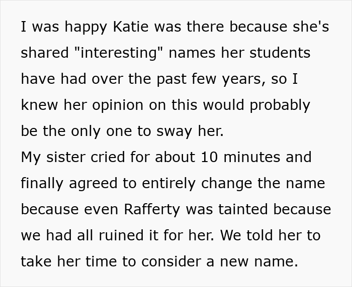 The author mentioned that the family even staged an intervention where her sister’s best friend, a teacher, explained how names can make children targets for bullying
