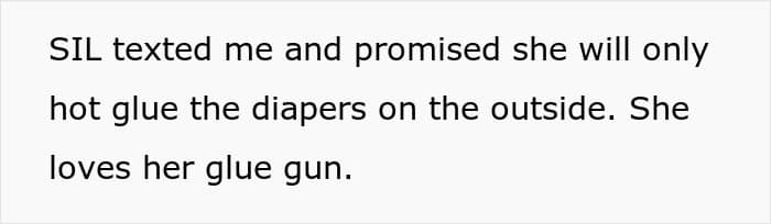 After some kind of family drama, the future mom agreed to have a diaper cake but just asked her SIL not to use much glue for it