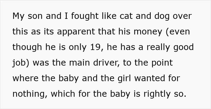 OP tells the community she’s now stuck playing referee between two young parents who refuse to communicate. She suspects that her son’s financial standing played a major role in the relationship, as he has a well-paying job and provided generously. Despite this, his ex is keeping a tight grip on baby time.