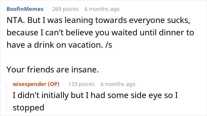 What do you think about this situation? Do you think the OP was in the wrong for enjoying her vacation her way, or were her friends being unfair? We would love to hear your thoughts!