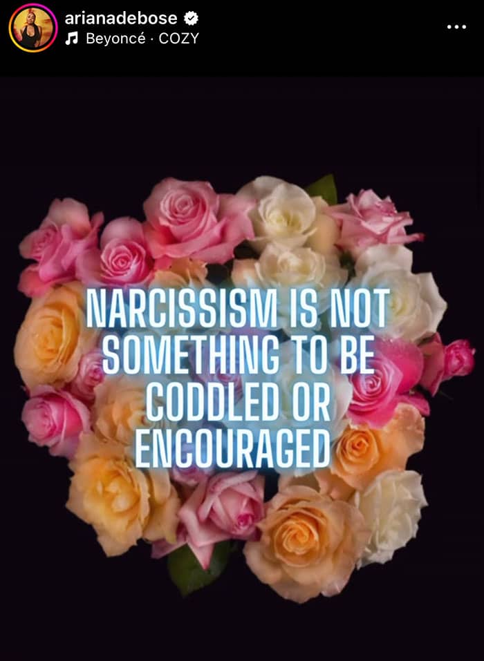 Saying she has no intention of joining a news cycle, she added, “This is not the first time I’ve posted about dealing with narcissism, and it probably won’t be the last, but next time I’ll be sure to clarify its origins first.”