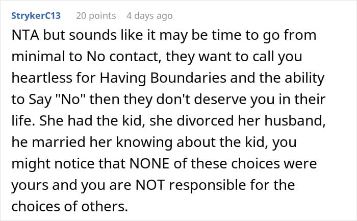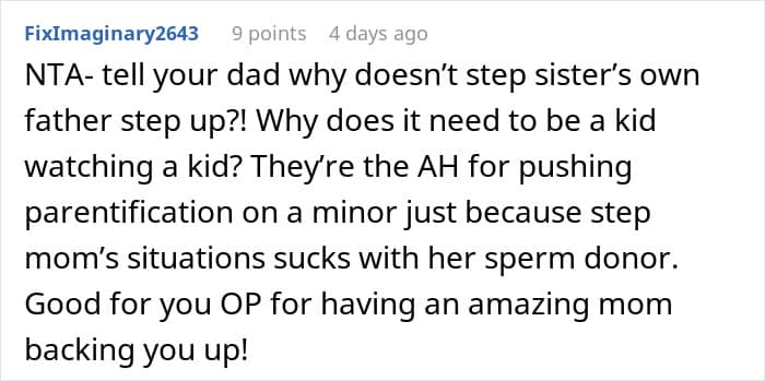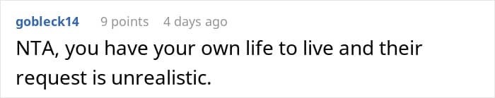This story really highlights the fact that parents often get so used to “giving orders” to their kids that they forget they have agency and, particularly later in life, can just say no. This often does create some amount of drama, as once people start to expect something, they begin to feel entitled to it.