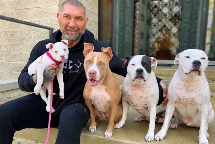 Dave Bautista has 4 pit bulls and has them trained to run and hide instead of trying to protect him.