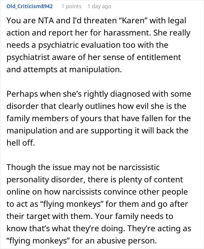 Fortunately, the tone of OP’s post suggests that he does know he is in the right and he now has the backing of hundreds, if not thousands of comments all suggesting that his brother and his family can go shove it. Because they really should. There is nothing wrong with asking a family member for some help, but you should meet them a lot further than halfway, instead of subjecting them to a campaign of psychological bombardment.