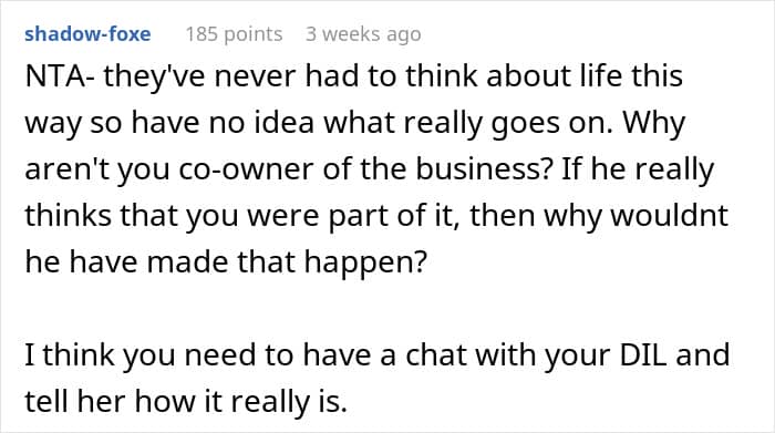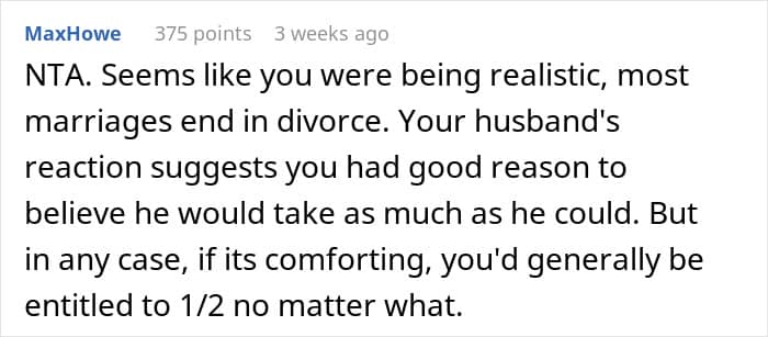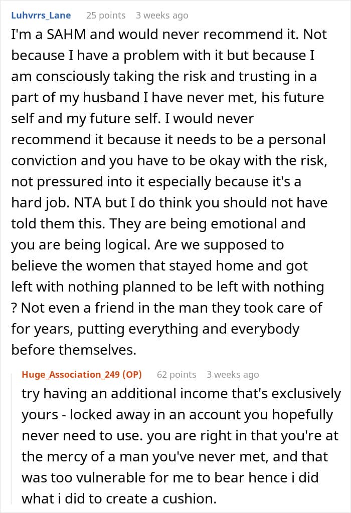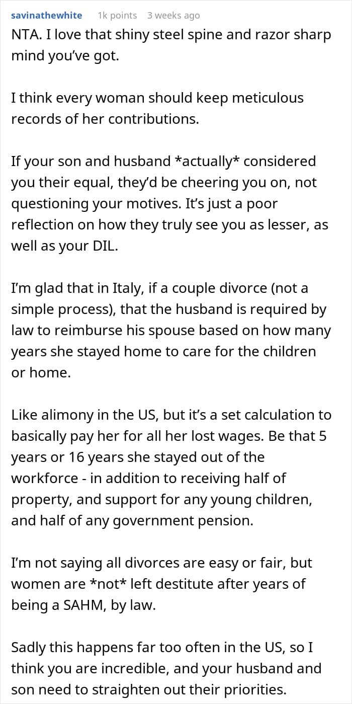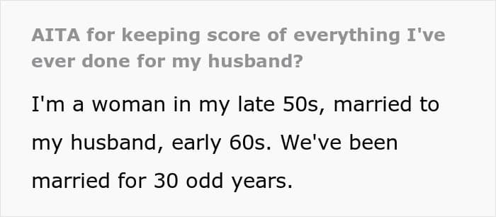One woman, redditor Huge_Association_249, asked the AITA community’s thoughts on whether she did anything wrong by keeping score of all the ways she’d contributed to the family business and its success, in case of divorce. Scroll down for the story in full, as well as how the internet reacted to the idea of keeping meticulous records to counteract the risk of being a housewife.