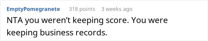 One internet user asked for people’s thoughts about her decision to keep a detailed record of all the ways she contributed to the family business