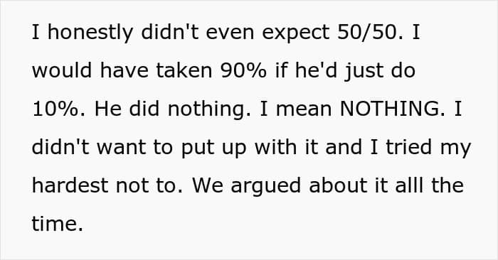 Sofia married her husband when she was just 18 years old, starry-eyed, and full of hope. She believed her husband would eventually step up and share the household duties. Spoiler alert: he didn’t. She wasn’t even asking for an even split – a 90/10 ratio would have been enough to show her that he could change. But nope, zilch, nada. Years of begging, arguments, and broken promises followed.