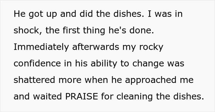 The wife married her husband when she was just 18 years old, hoping he would one day change and help around the house, but he never did