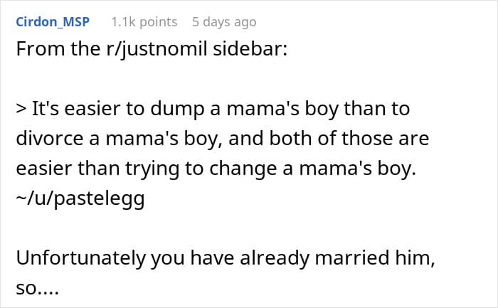 Ever met someone so pampered they practically expect the world to roll out a red carpet for them? Like, seriously, their life motto could be “Why lift a finger when others can do it for you?” That’s the story of one Redditor who was married to a man who’s been coddled by his mom so much that it was putting a serious strain on their marriage.
