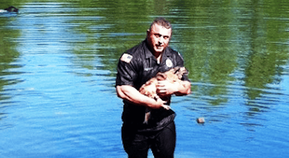 Brave Officer Dives Underwater To Save Trapped Dog Inside Drowning Truck