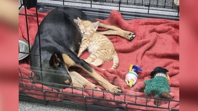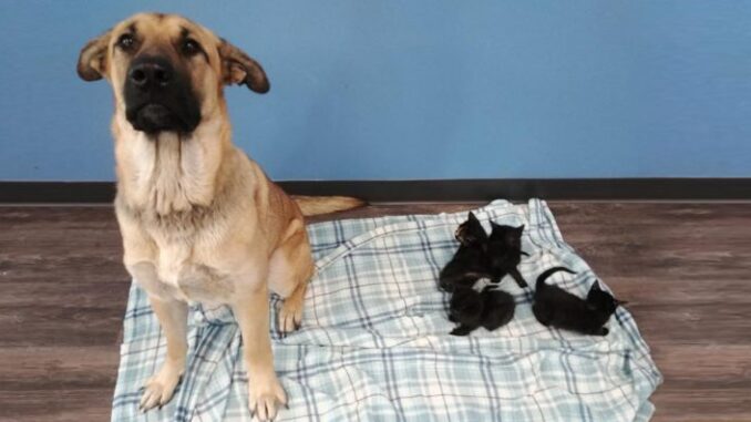 Stray Dog Wraps Her Body Around Orpaned Kittens To Keep Them Warm In Freezing Weather